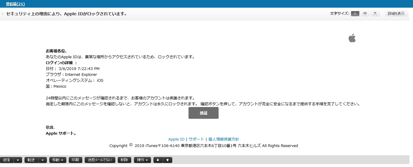 appleを名乗る迷惑メールが来ました。